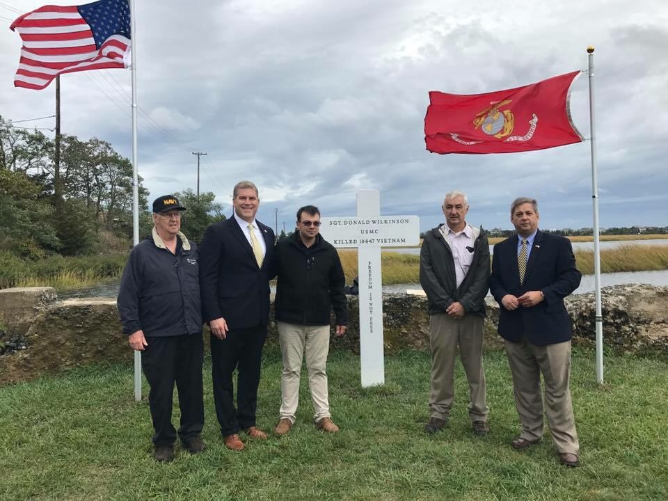 I consider it a real honor to be able to speak at this dedication ceremony today and to be with you on such an important occasion. My name is Donald Jarvis, I am a combat veteran; also from Newbury with deployments in Iraq and Afghanistan. I work for the Massachusetts Department of Veterans Services and it is with great honor today to be here in Newbury honoring a fellow veteran and resident Donald Wilkinson. Today we remember the sacrifices he made, and the courage it took to defend duty, God, country and the United States Marine Corp.